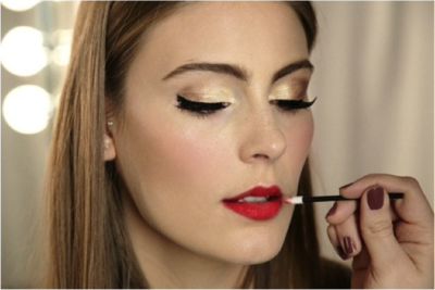 Warna Lipstik Merah & Eyeshadow Gold